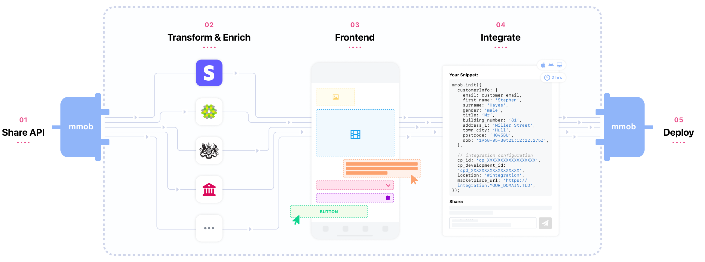 mmob offers the fastest route to market when embedding your products and services with your partners, simplifying integration into apps and websites.